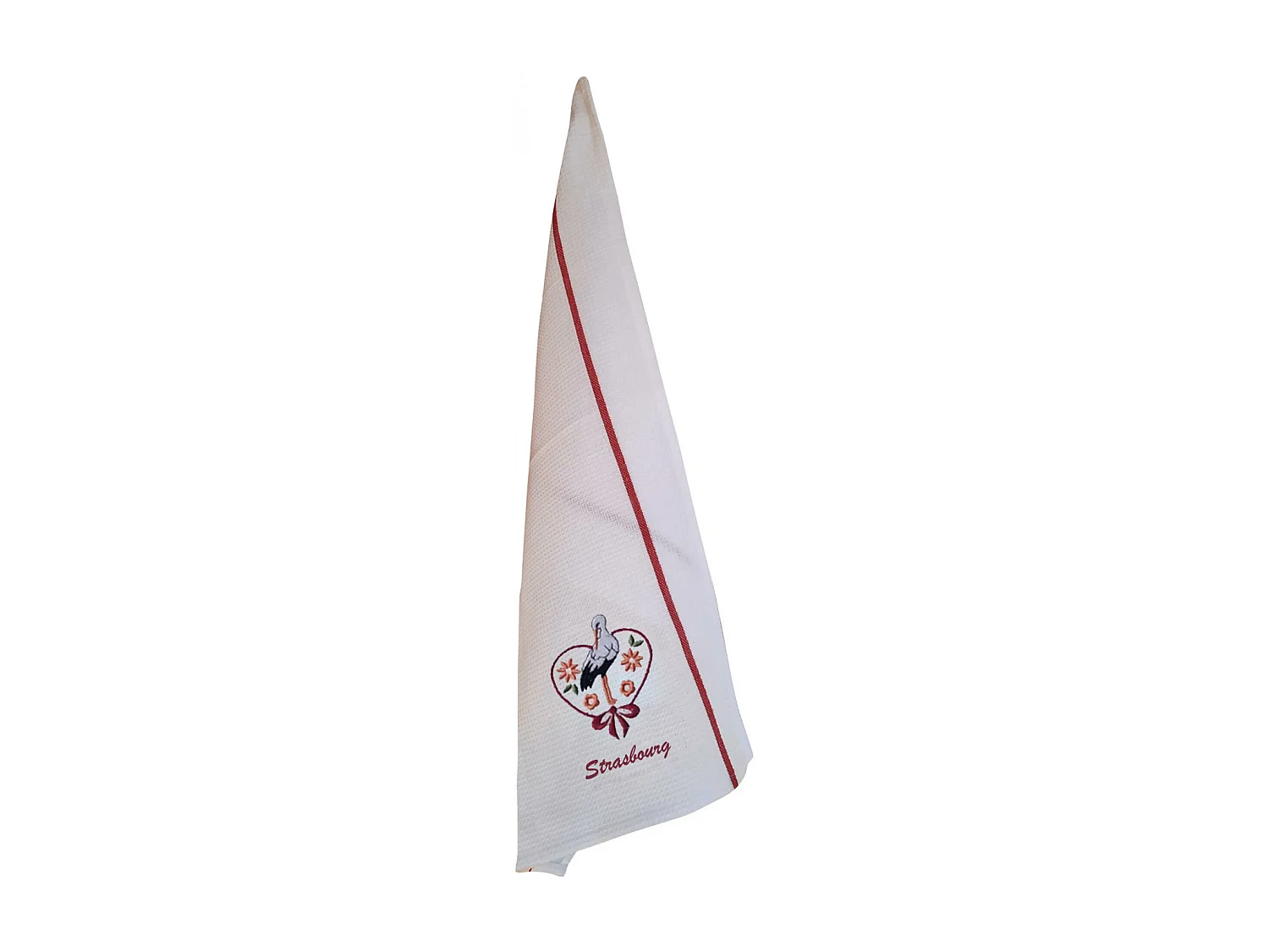 Torchon nid d'abeilles recyclé Cigogne fleurs Strasbourg blanc/rouge 50 x 70 cm Winkler