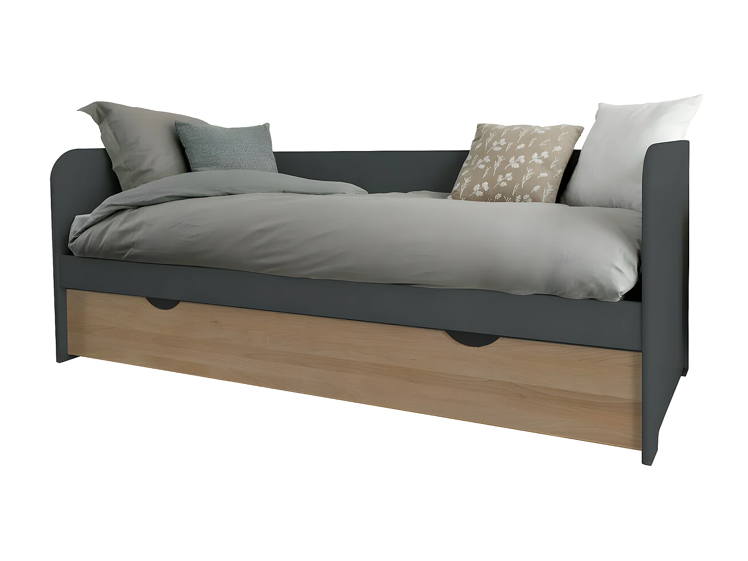 Lit gigogne 80x190 cm bois massif gris et bois JAVA