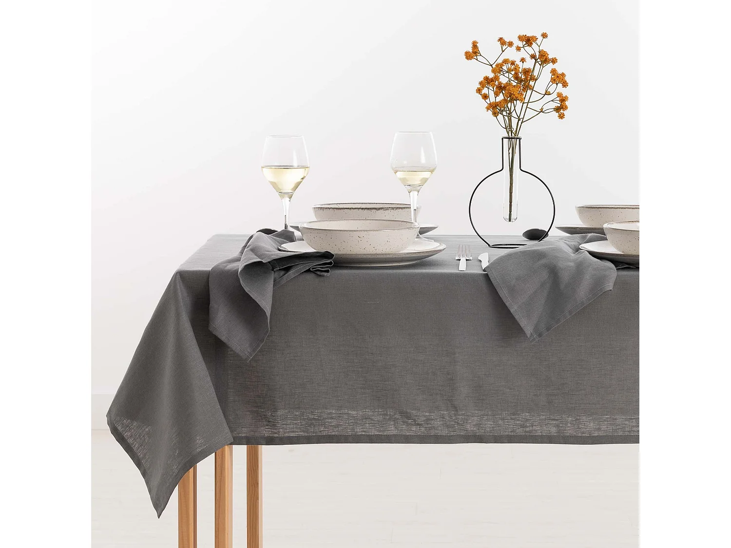 Nappe hydrofuge anti-taches en lin 100 % Antracithe - 250x150 cm