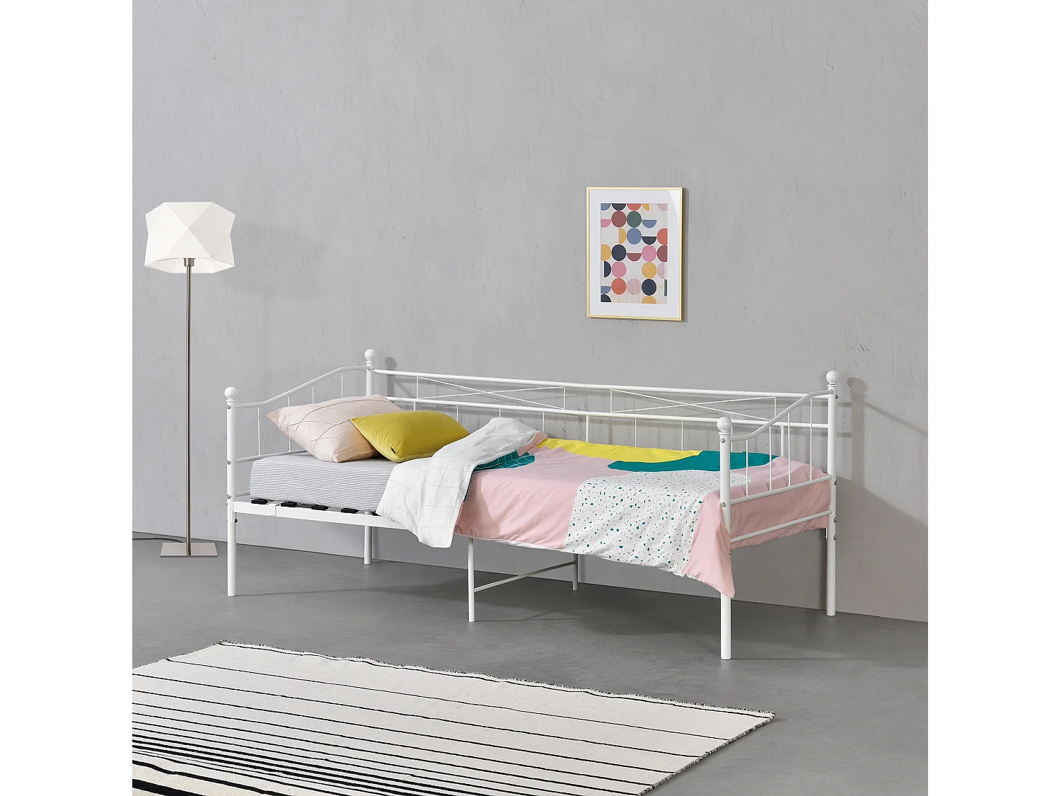 Cadre de Lit Simple Arjeplog Acier Laqué 90 x 200 cm Blanc Mat [en.casa]