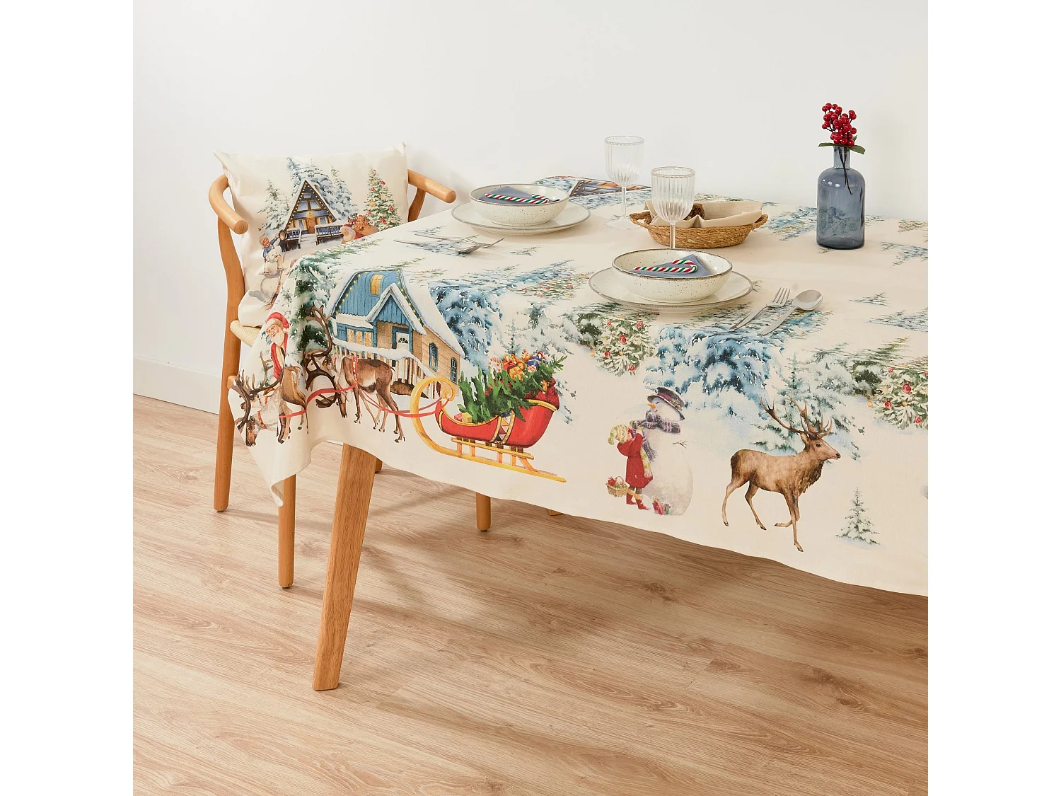 Nappe anti-taches toucher tissu Christmas Landscape de 100x155 cm