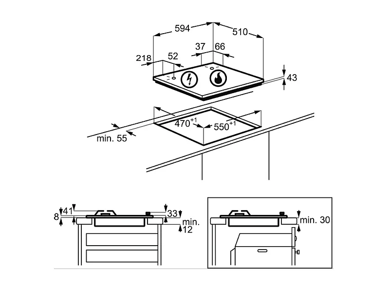 Plaque gaz FAURE 8000W 59.4cm, FGH62414BA