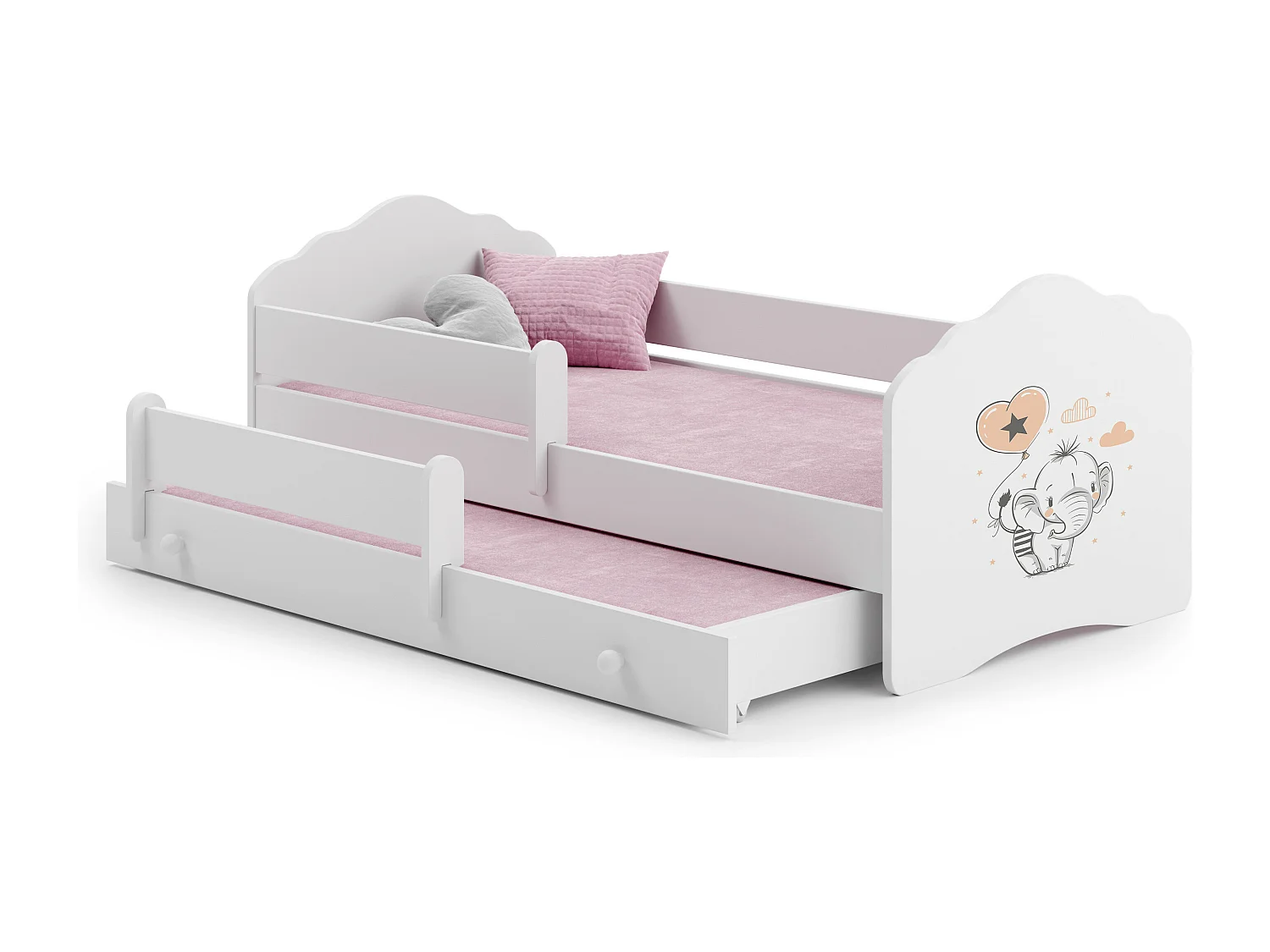 Lit gigogne enfant blanc FIONA avec sommier et matelas - Elephant orange - 2 x 160 cm x 80 cm