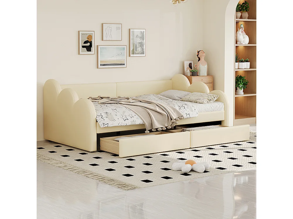 Canapé-lit Lit 90x200 cm Lit multifonctionnel avec dossier et accoudoirs avec 2 compartiments de rangement Lit d'adolescent Beige