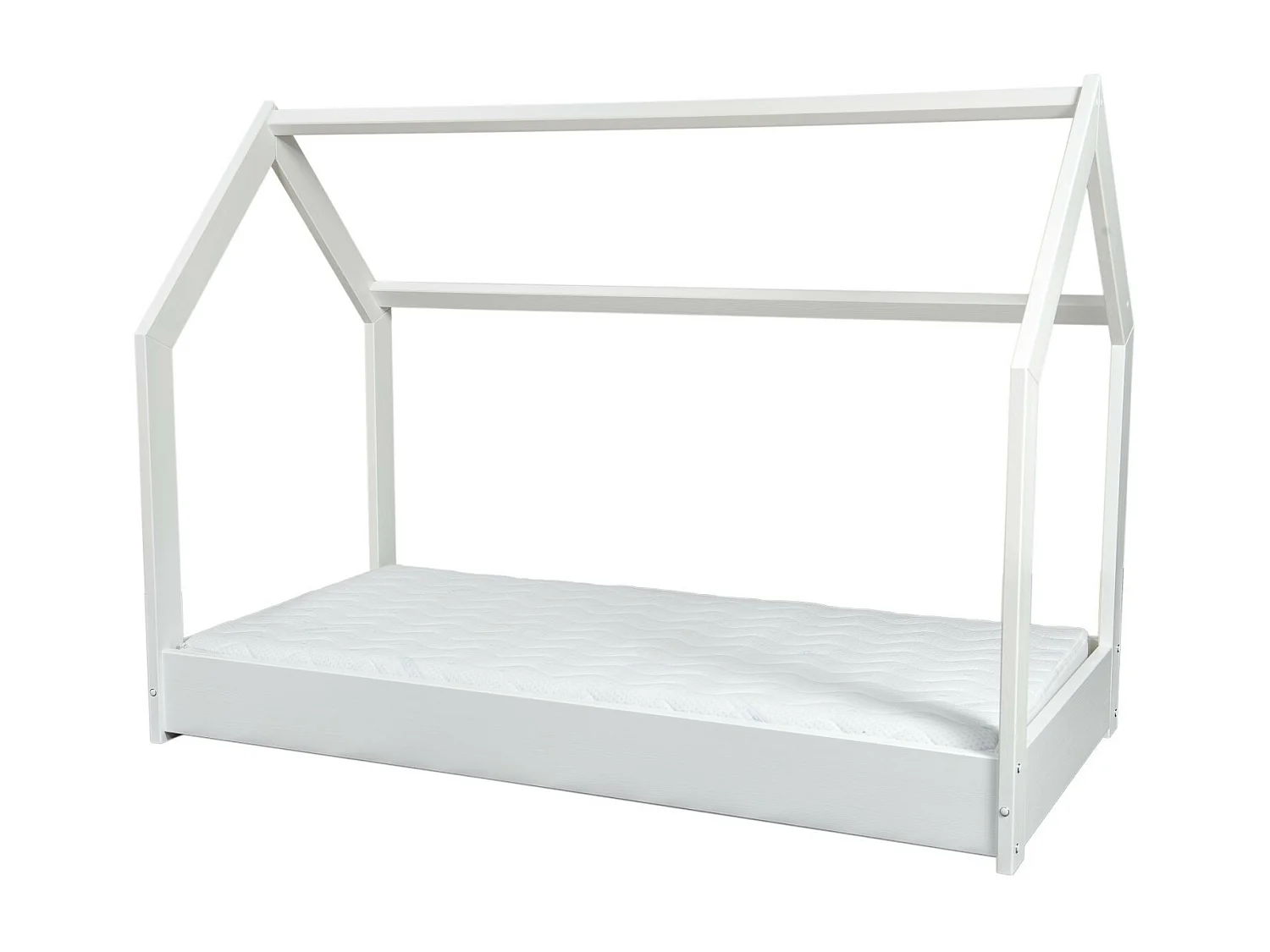 Lit pour enfant maison 2-en-1 Avec matelas : Cabane Ludique en Bois Naturel 160x80 cm - Blanc
