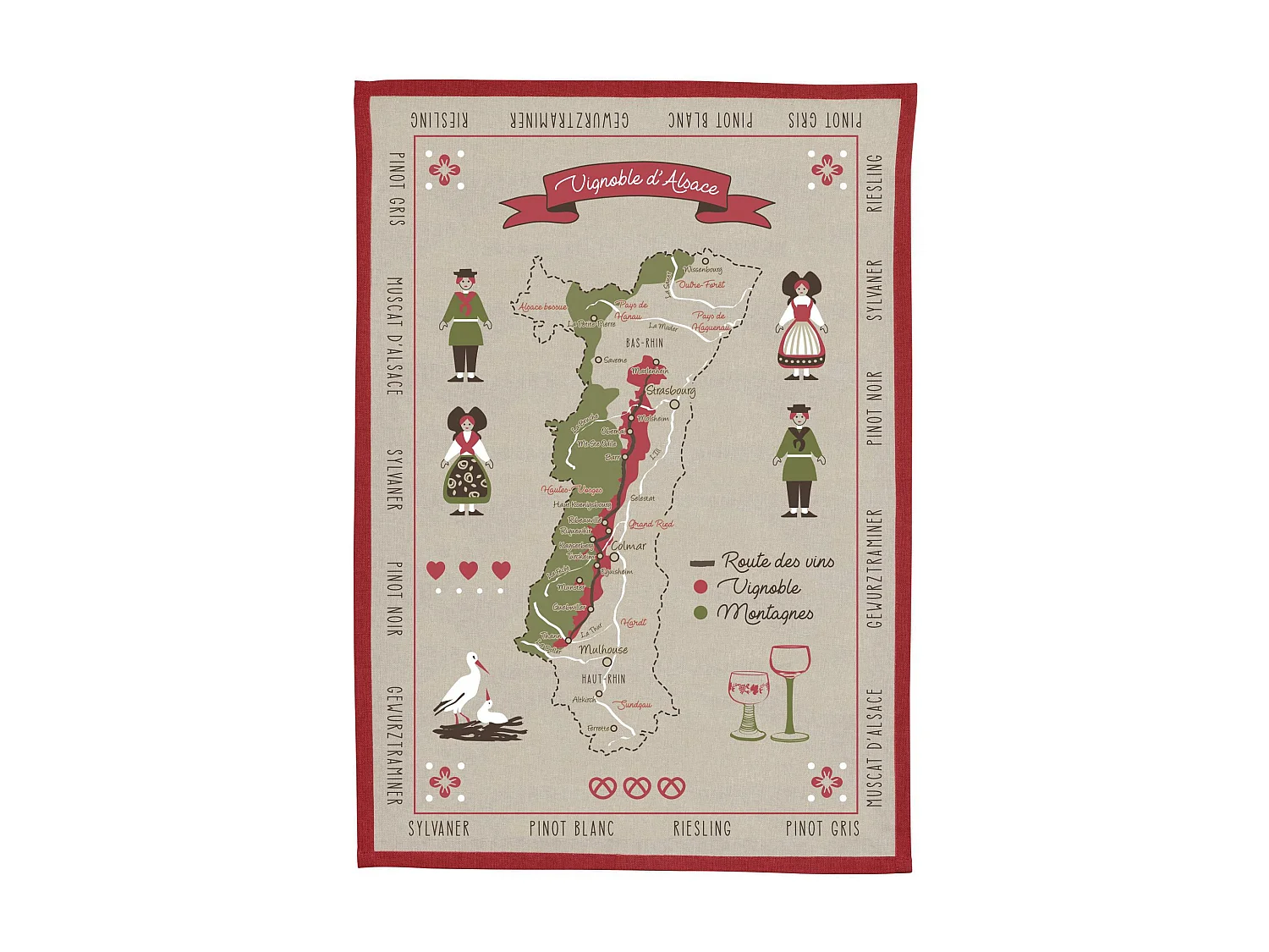 Torchon Vignoble d'Alsace ficelle 50 x 70 cm Winkler