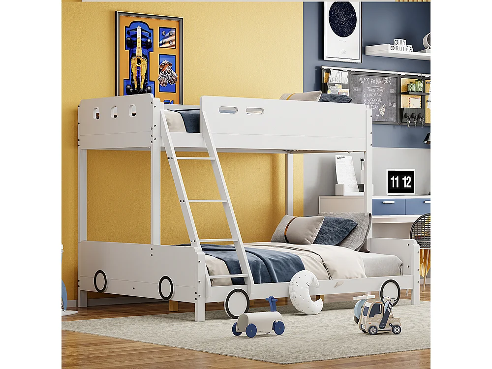 Lit superposé lit supérieur 90x200cm lit inférieur 140x200cm pour enfants cadre en bois massif forme de voiture blanc