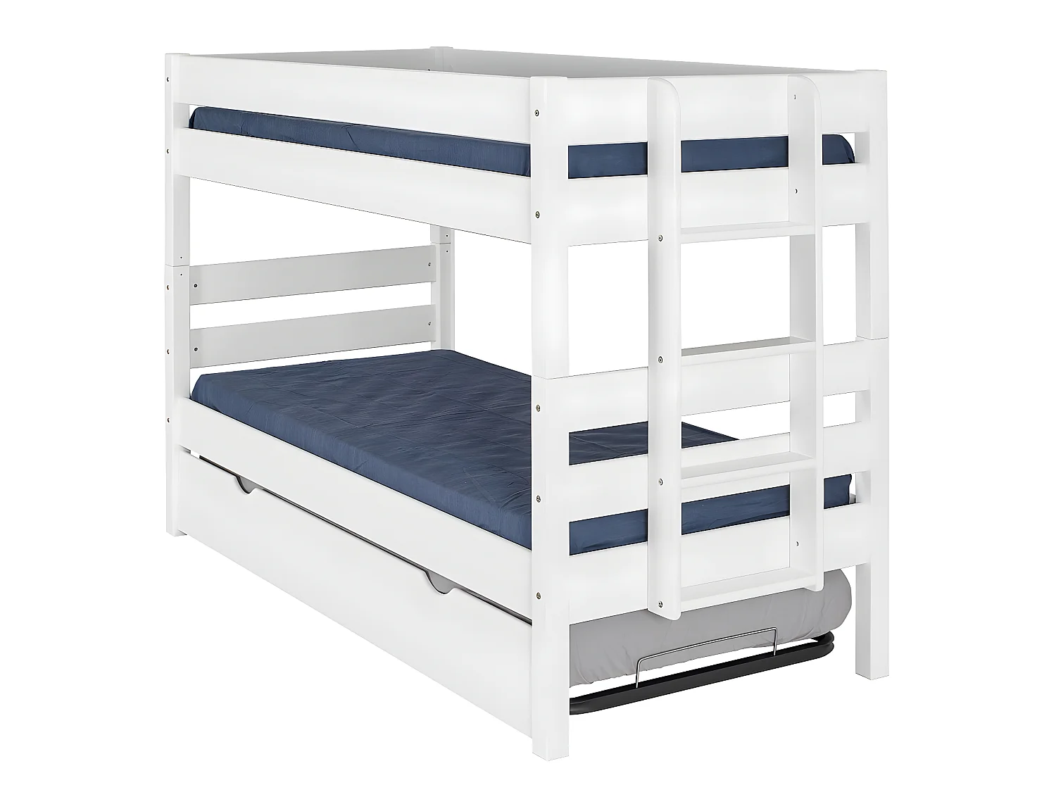 Pack lit superpose gigogne avec 3 matelas 90x190 cm bois massif blanc ANIBA