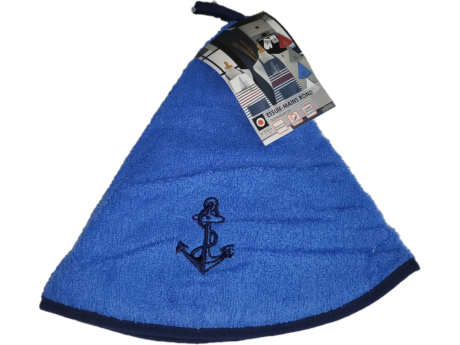 Essuie mains torchon rond brode ancre